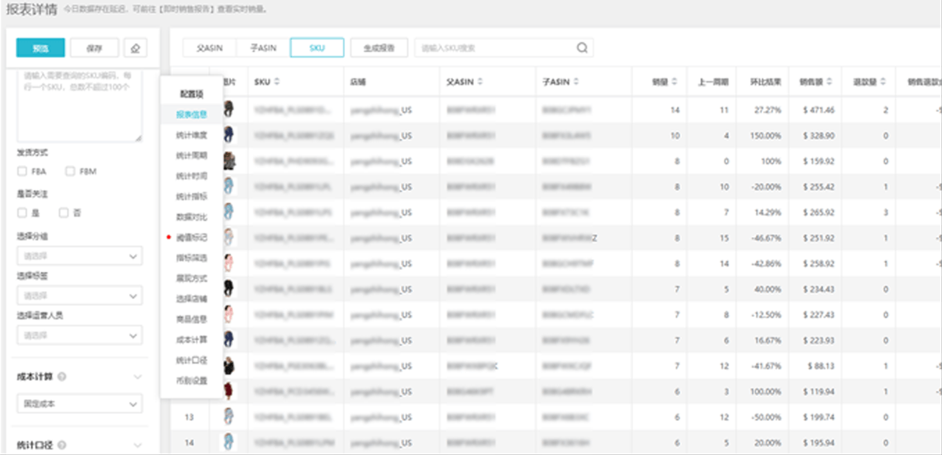 商品綜合分析、子賬號綜合分析、商品每日銷售統計…